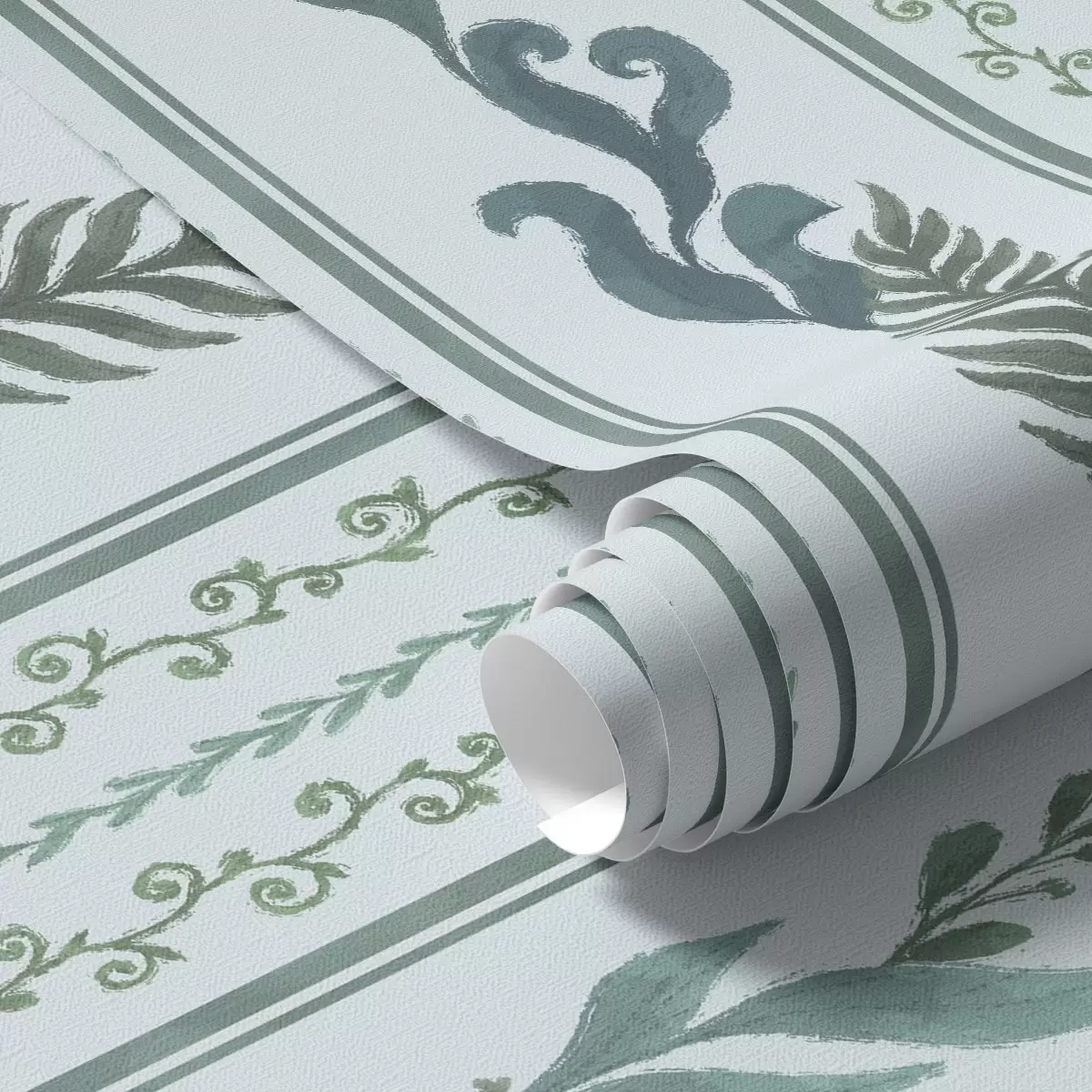 Papel pintado Rayas con ramificaciones y rizos en azul claro frío Nr. a00823v1