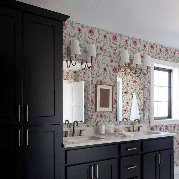 Papel pintado Delicadas amapolas rosas con hojas en técnica acuarela Nr. a00830