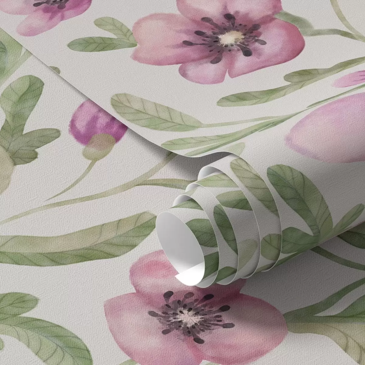Papel pintado Delicadas amapolas rosas con hojas en técnica acuarela Nr. a00830