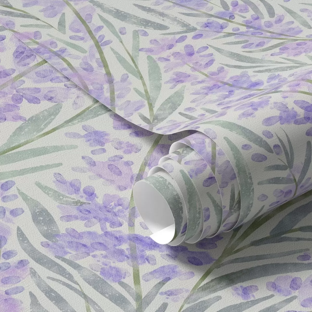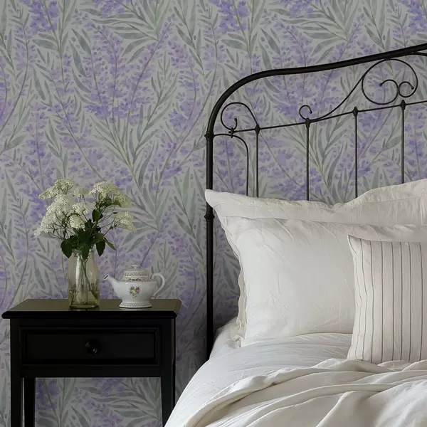 Papel pintado Ramitas de lavanda en tonos morados sobre fondo claro Nr. a00835