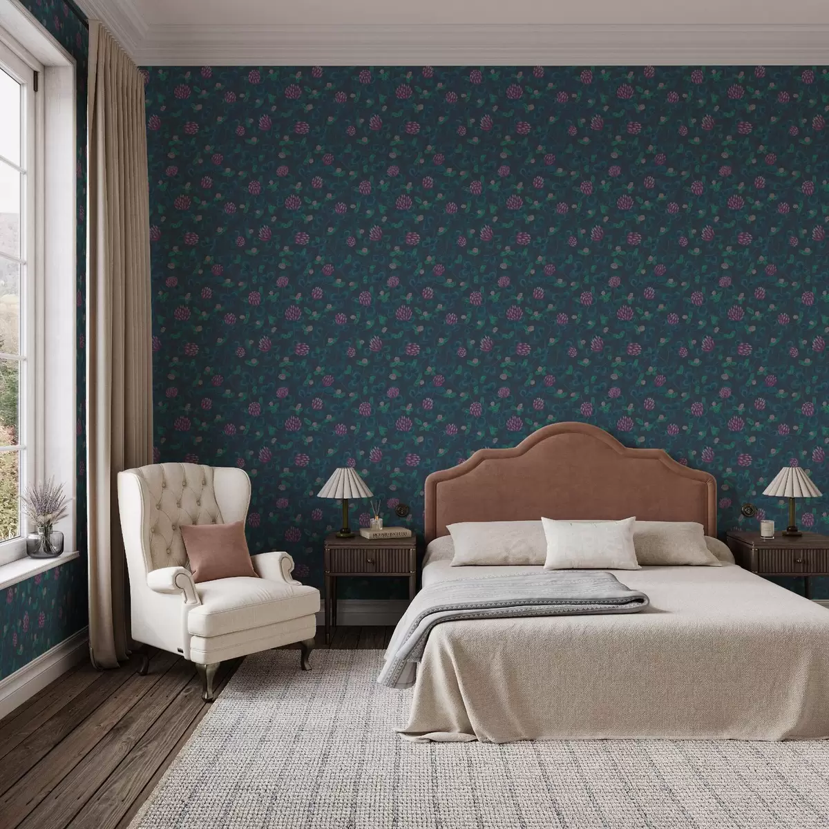 Papel pintado Trébol con flores moradas sobre fondo azul oscuro Nr. a00836
