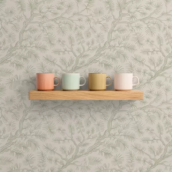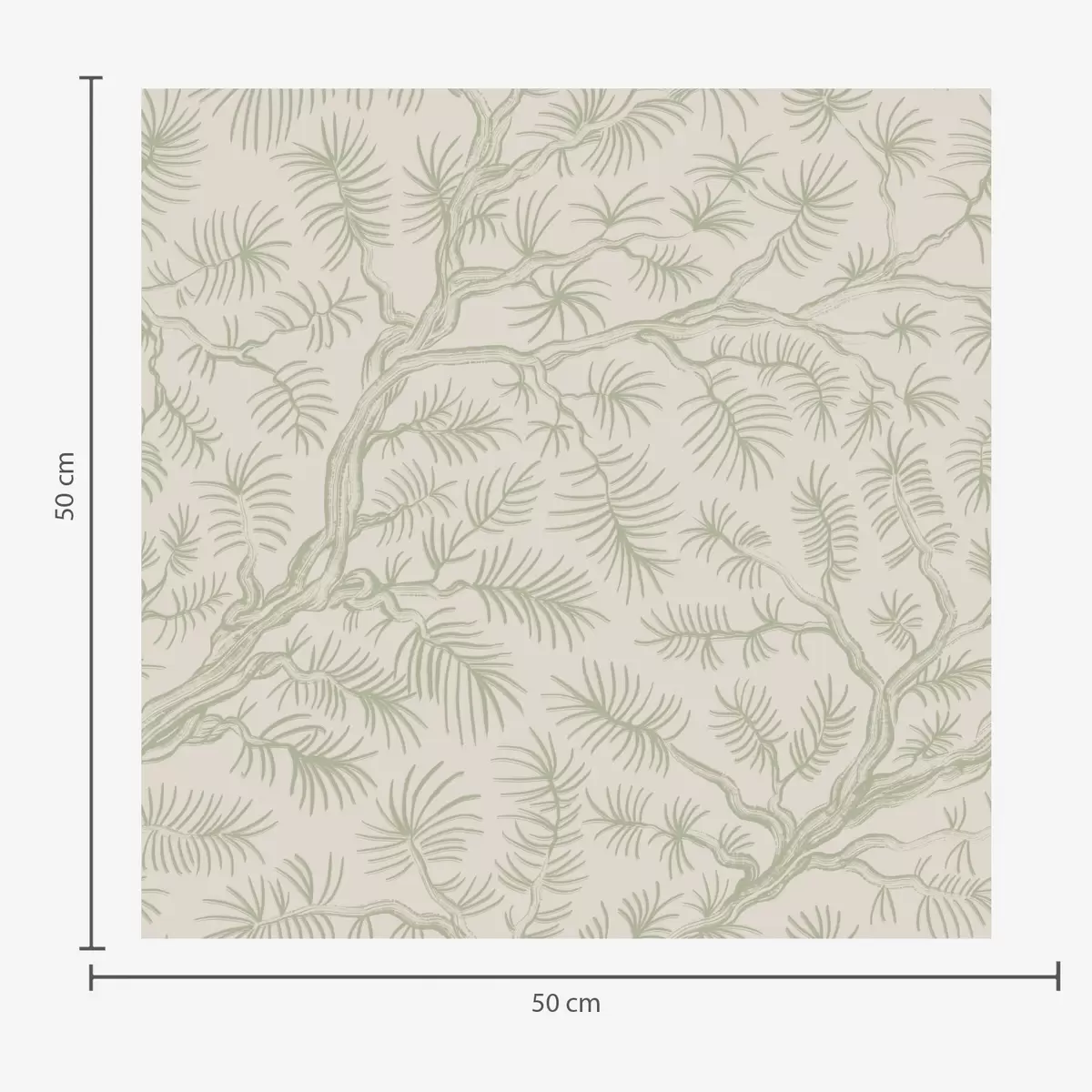 Papel pintado Ramitas de pino en tonos verde claro sobre fondo beige Nr. a00838v1