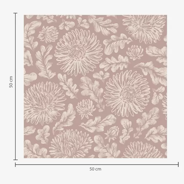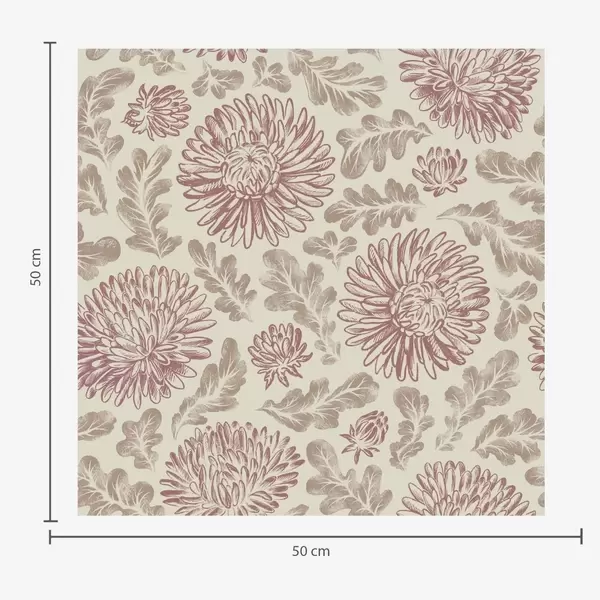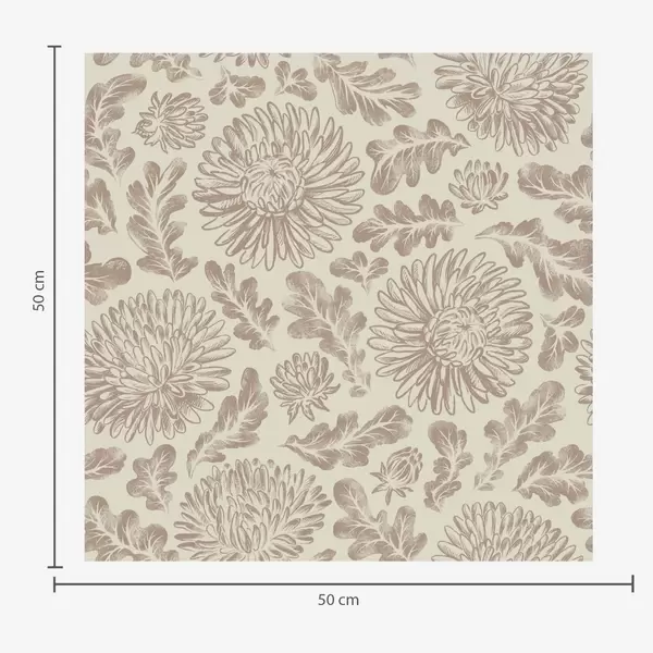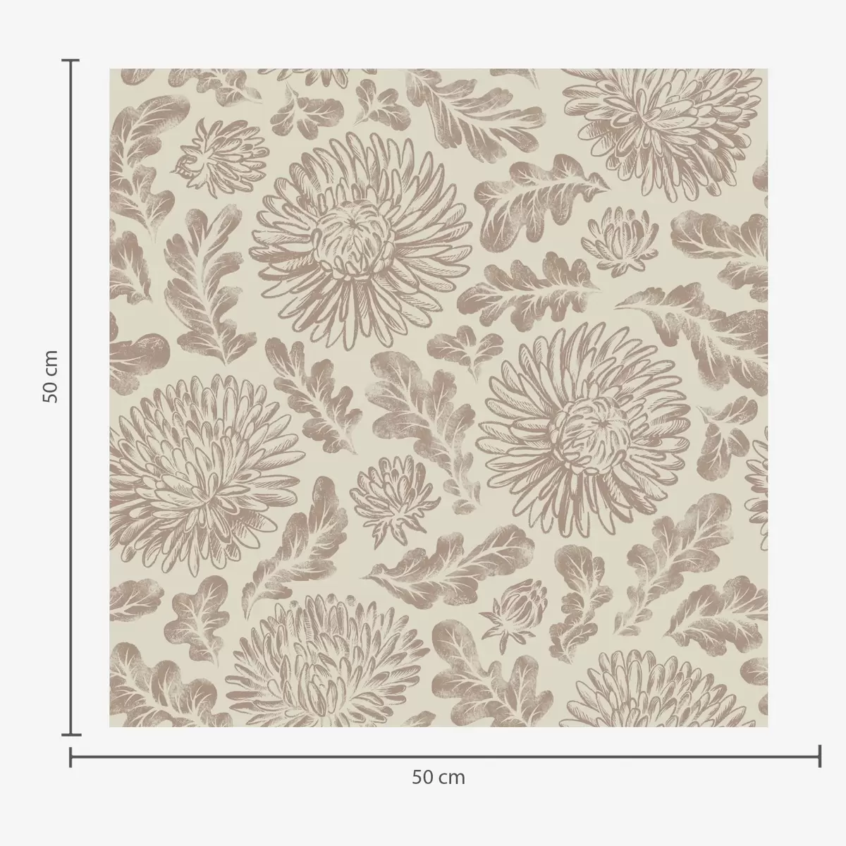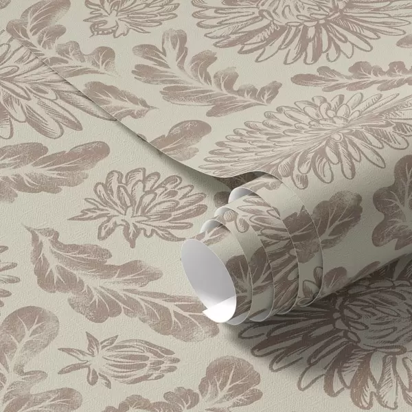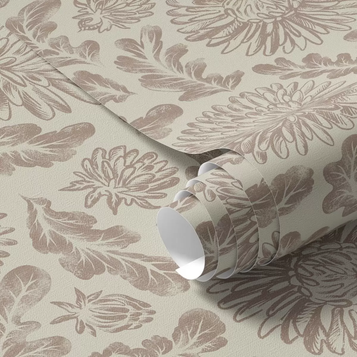 Papel pintado Crisantemos y hojas de roble en suave marrón beige. Nr. a00840