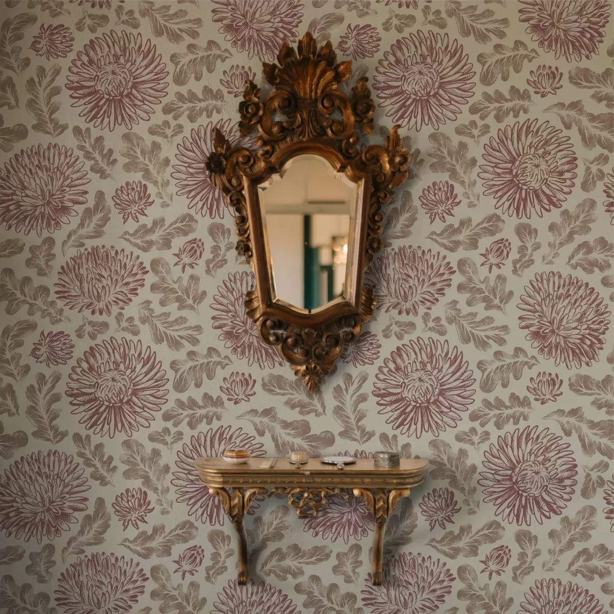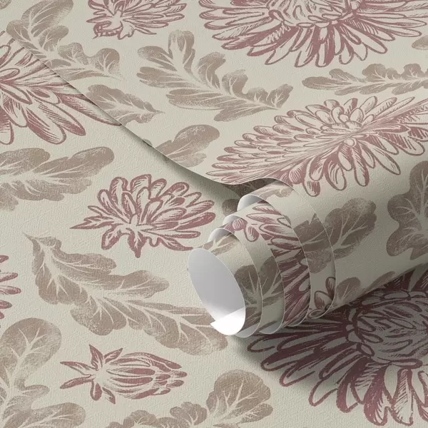 Papel pintado Crisantemos con toques de vino sobre fondo crema Nr. a00840v1