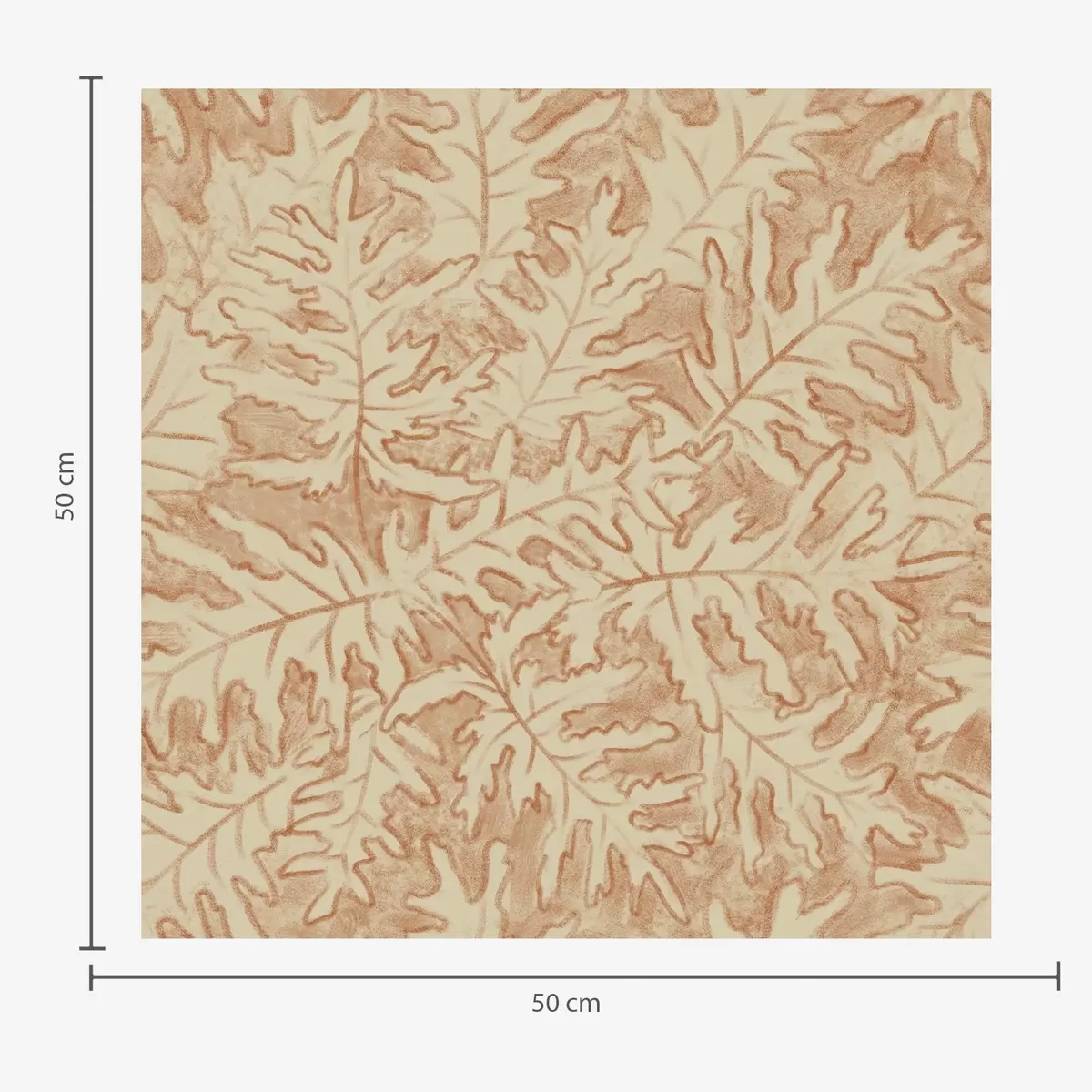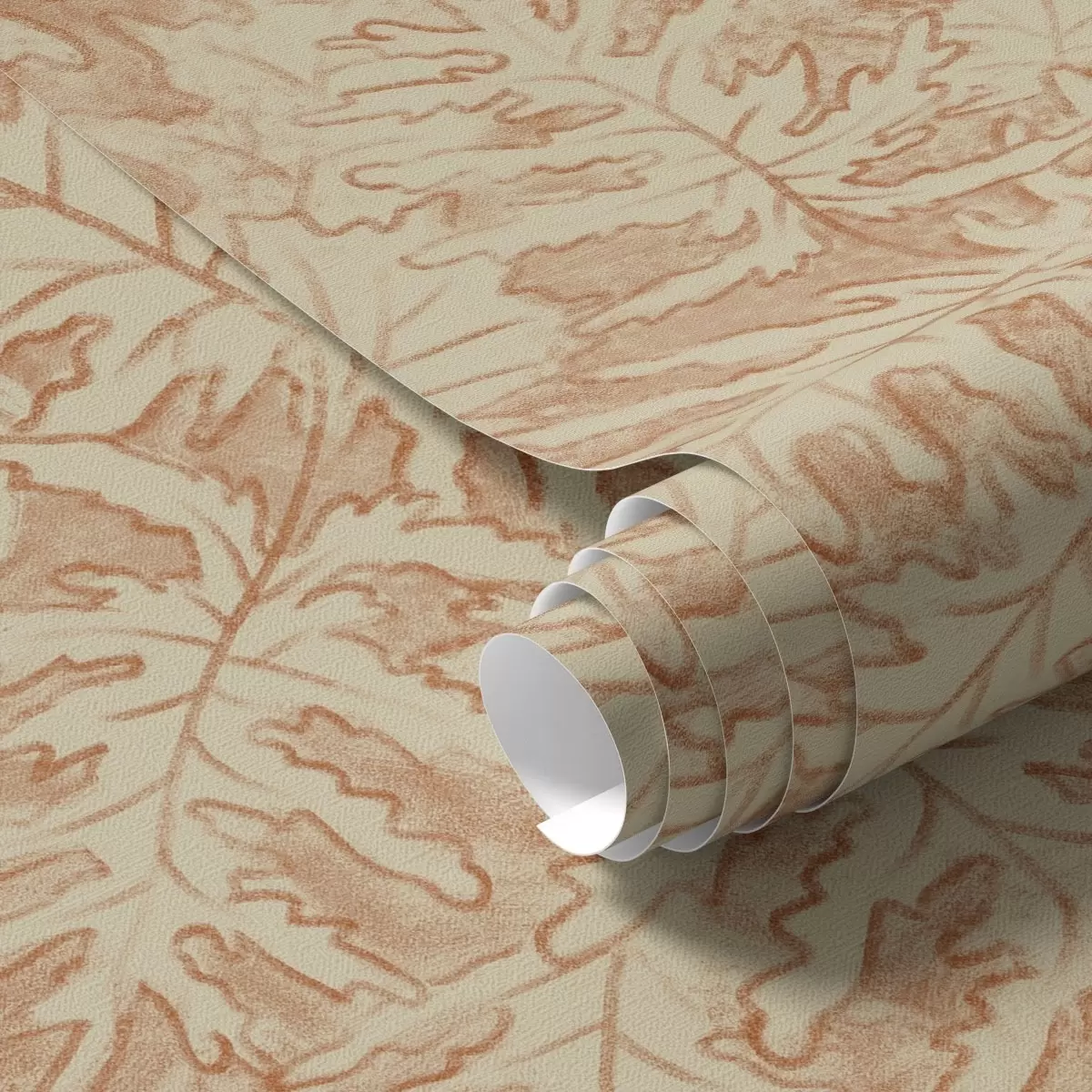 Papel pintado Hojas grandes de roble en terracota sobre fondo crema Nr. a00846
