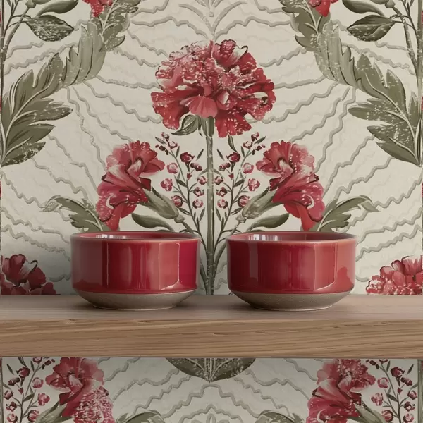 Papel pintado Grandes peonías rojas con fondo gráfico, fondo crema Nr. a00857