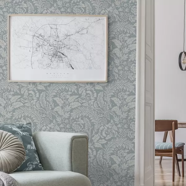 Papel pintado Estampado floral monocromo sobre fondo gris azulado Nr. a00859