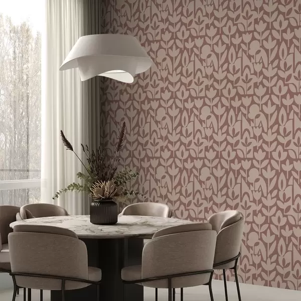 Papel pintado Siluetas florales geométricas en terracota y crema. Nr. a00875v2