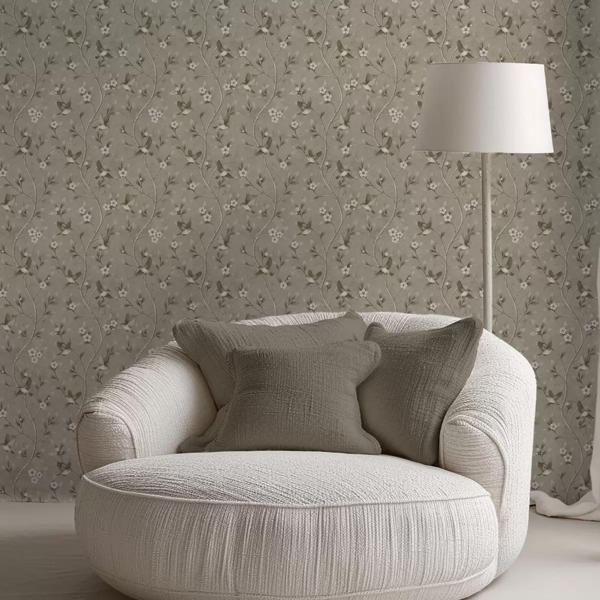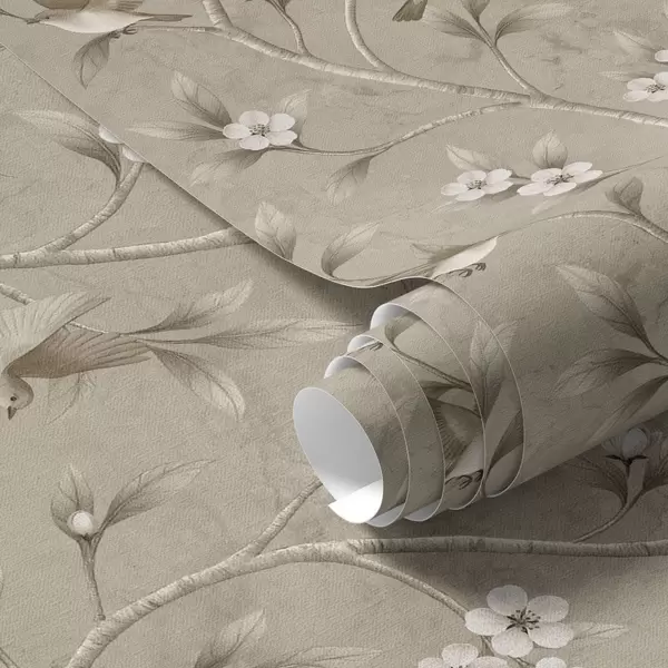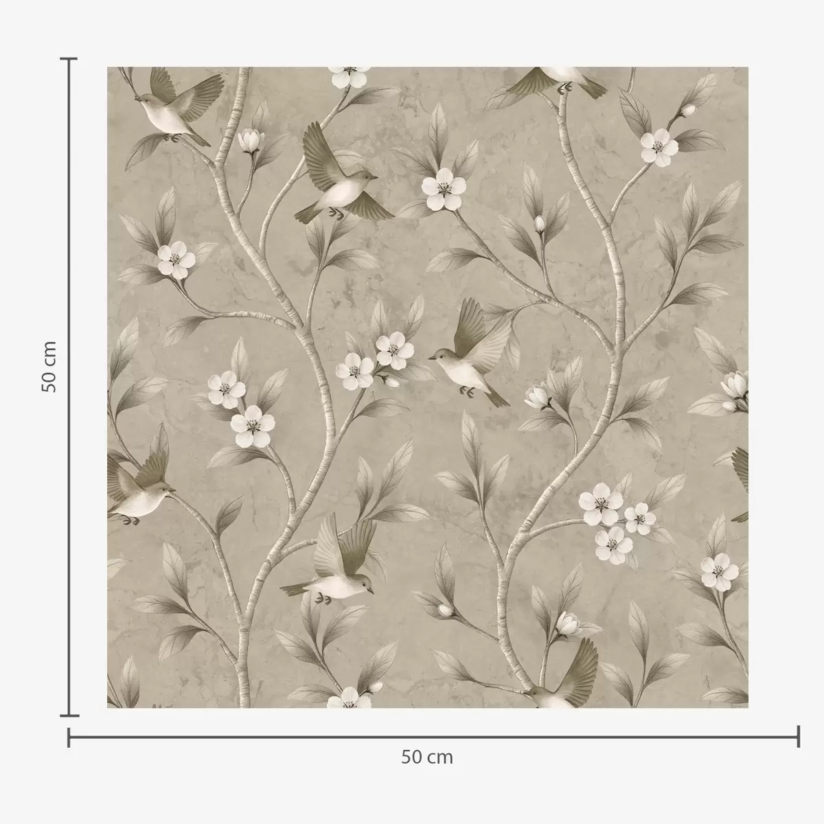 Papel pintado Pájaros y ramas en flor en cálidos tonos sepia. Nr. a00882