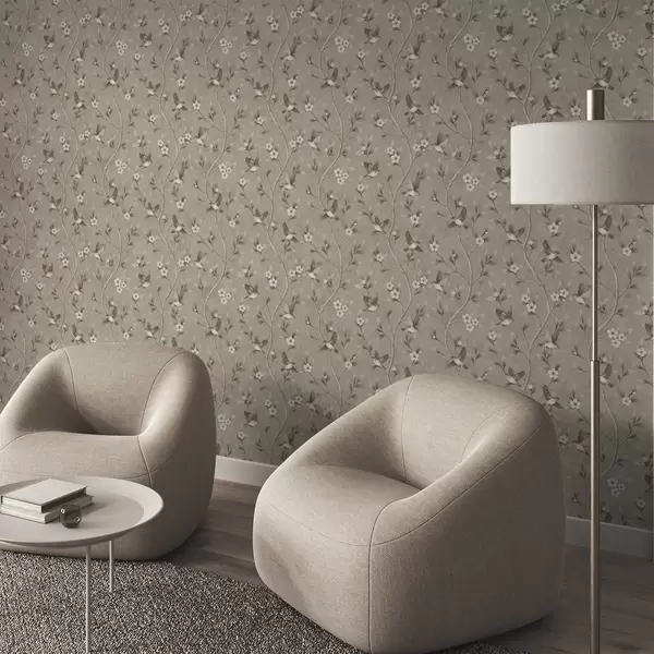 Papel pintado Pájaros y ramas en flor en cálidos tonos sepia. Nr. a00882