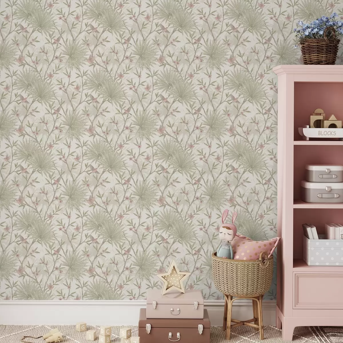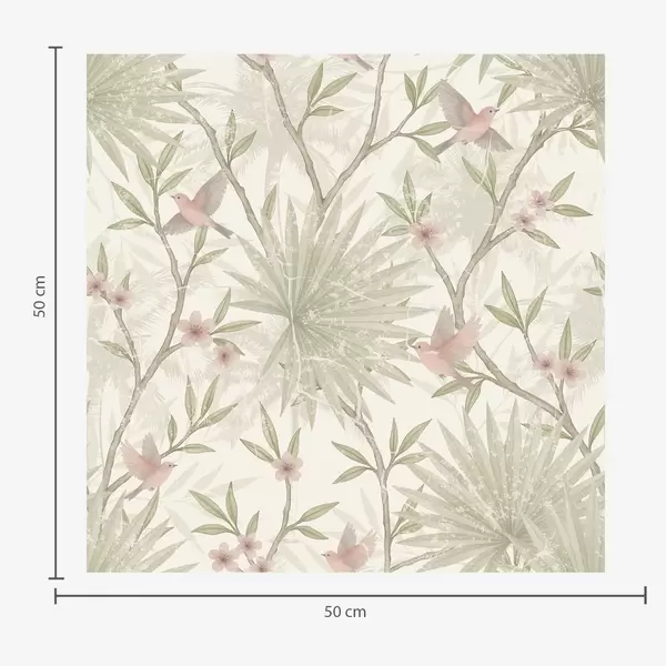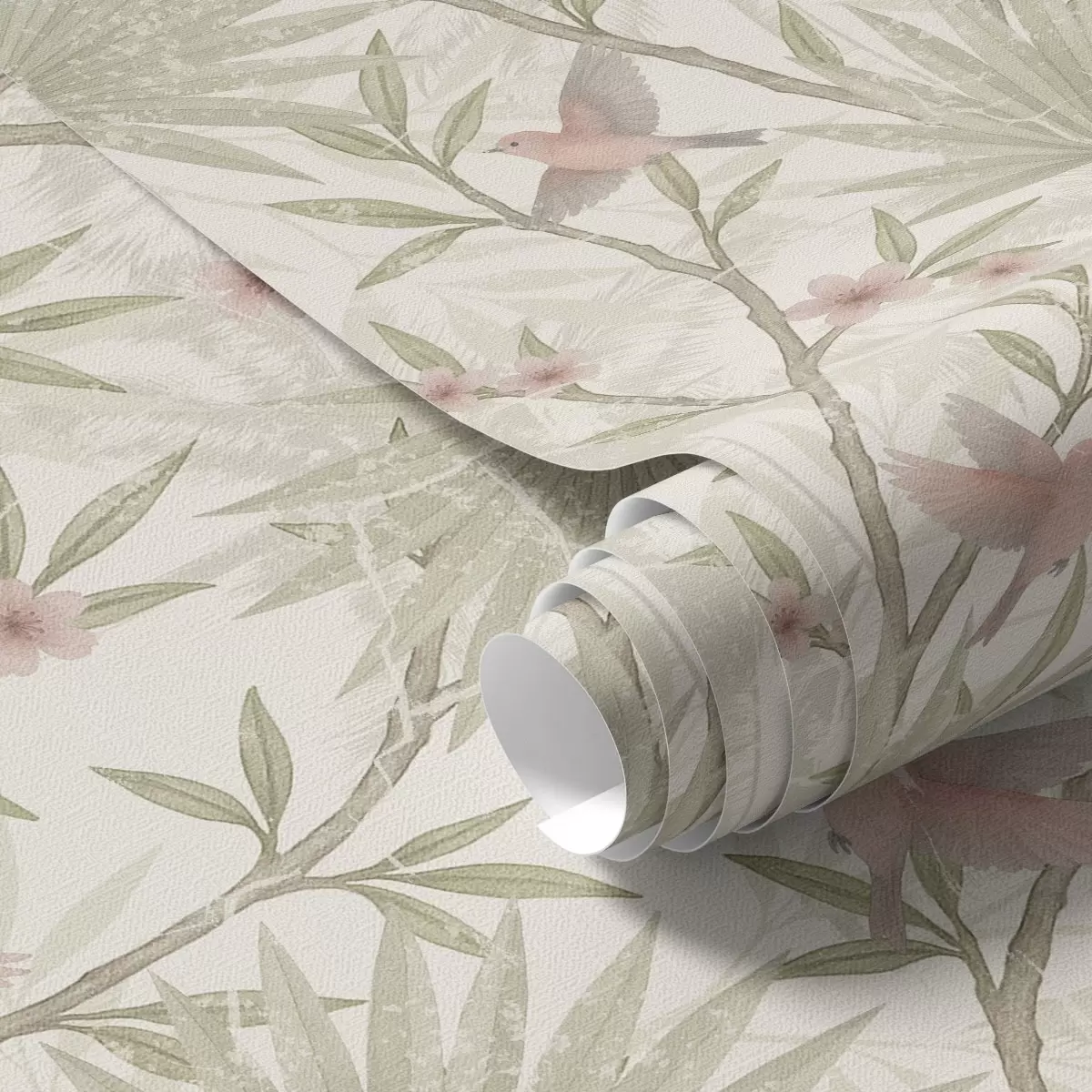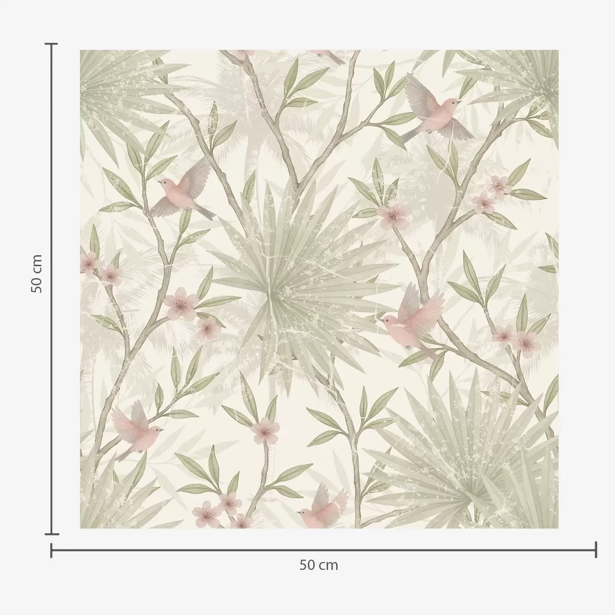Papel pintado Delicadas aves rosadas entre hojas de palmera Nr. a00883