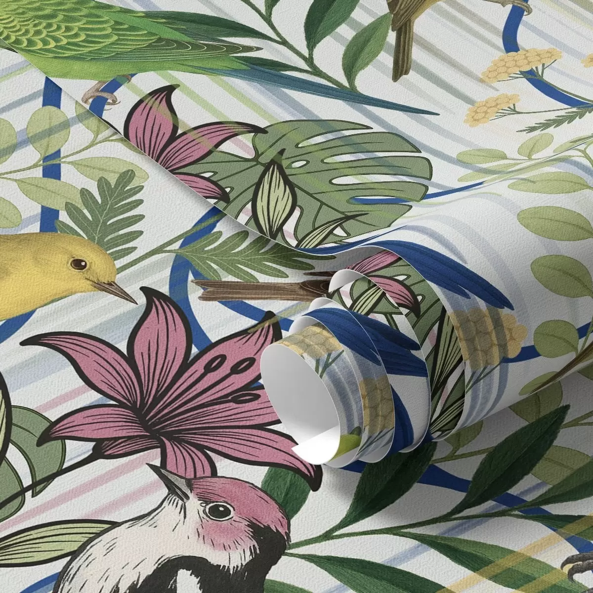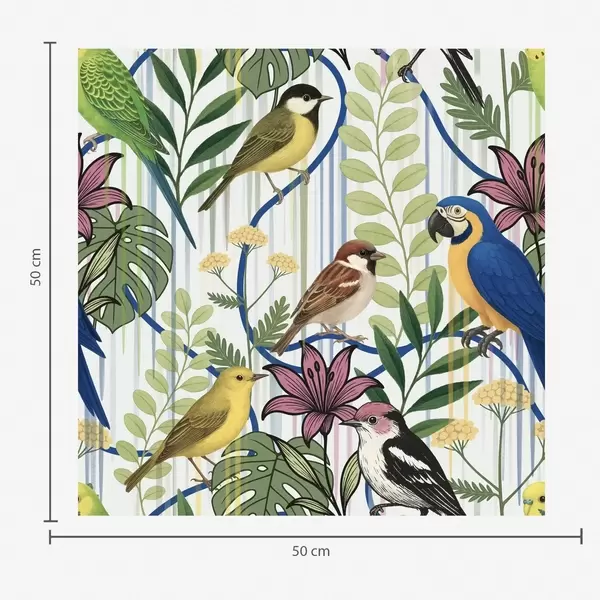 Papel pintado Alegres aves exóticas entre la vegetación tropical Nr. a00887