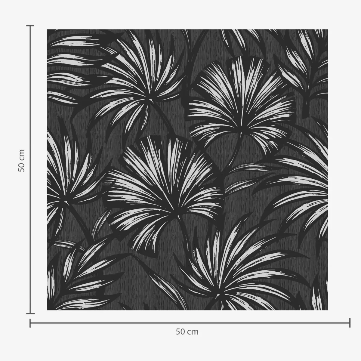 Papel pintado Hojas de palmera blancas y negras sobre fondo oscuro Nr. a00891