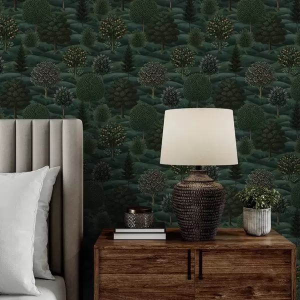 Papel pintado Paisaje ondulado de un verde intenso con árboles dispuestos en patrones Nr. a00892