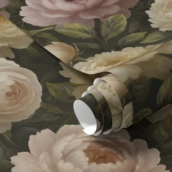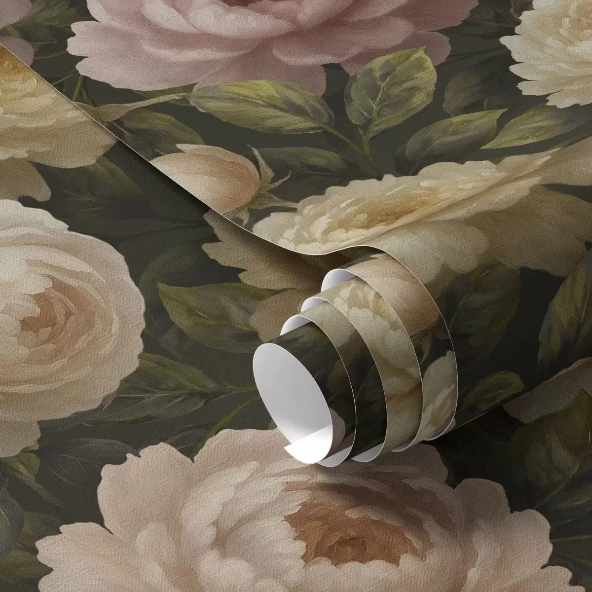 Papel pintado Románticas peonías sobre un fondo botánico oscuro Nr. a00893