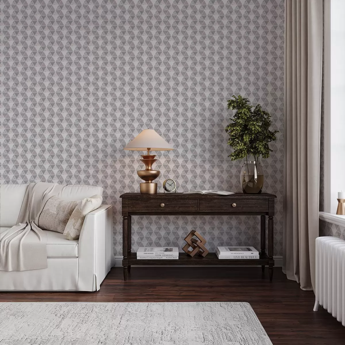Papel pintado Patrón geométrico de triángulos en tonos grises y empolvados. Nr. a00920