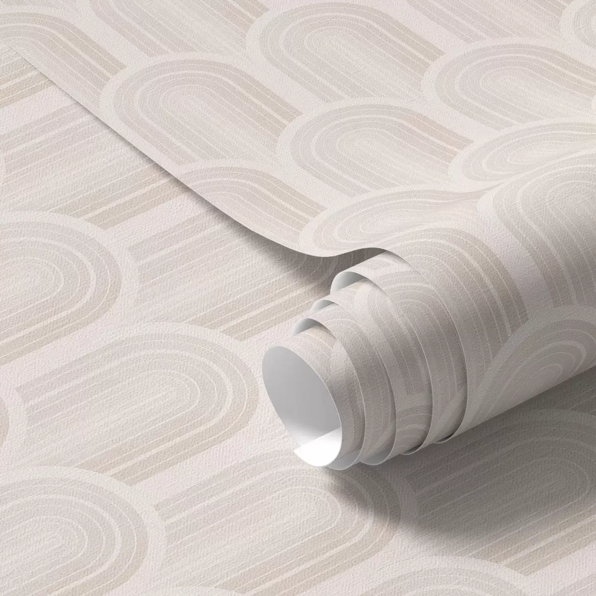 Papel pintado Fila de formas arqueadas en suaves rayas beige, estilo retro. Nr. a00923