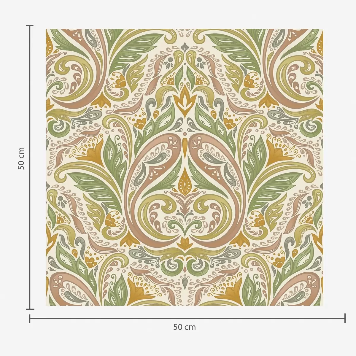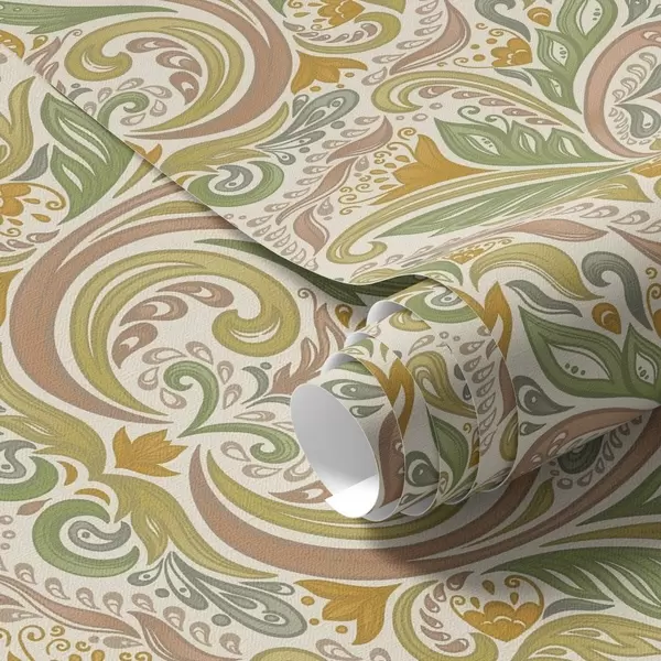 Papel pintado Remolinos ornamentales con hojas en tonos verdes y terracota. Nr. a00927v1
