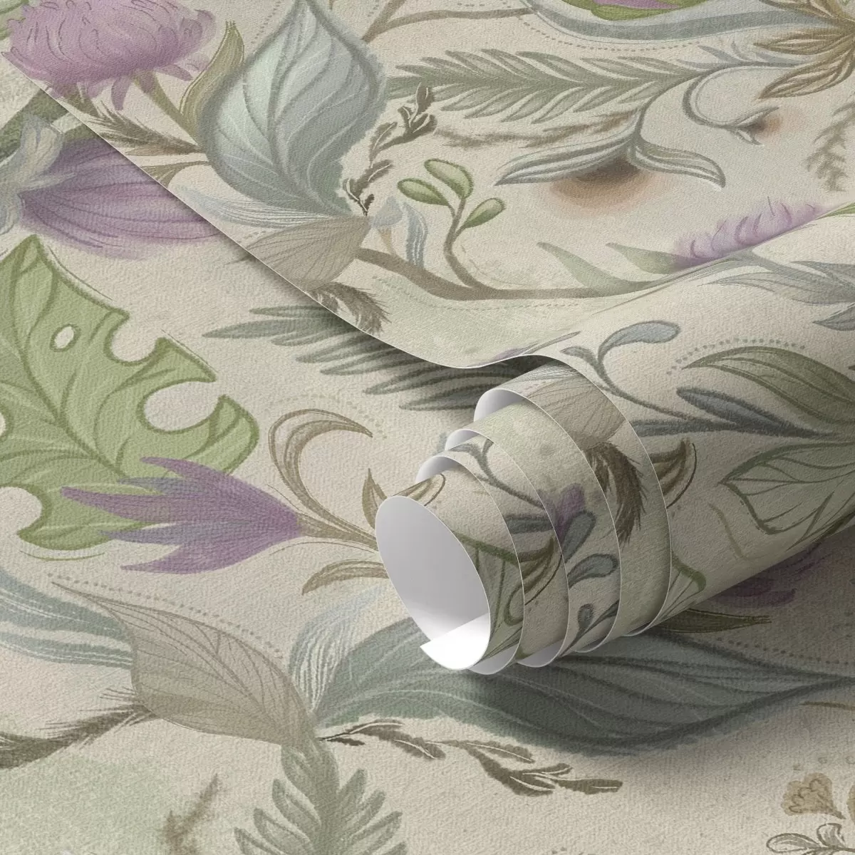 Papel pintado Brotes de lila y suave vegetación sobre fondo crema. Nr. a00930v2