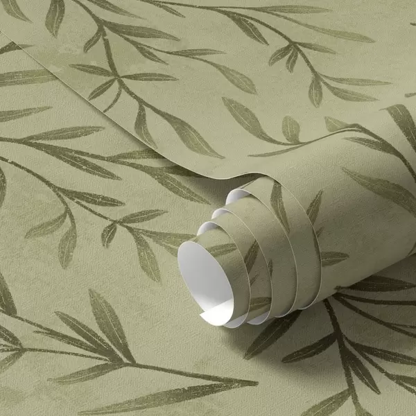 Papel pintado Ramitas de olivo sobre un fondo texturizado de color amarillo verdoso apagado. Nr. a00936