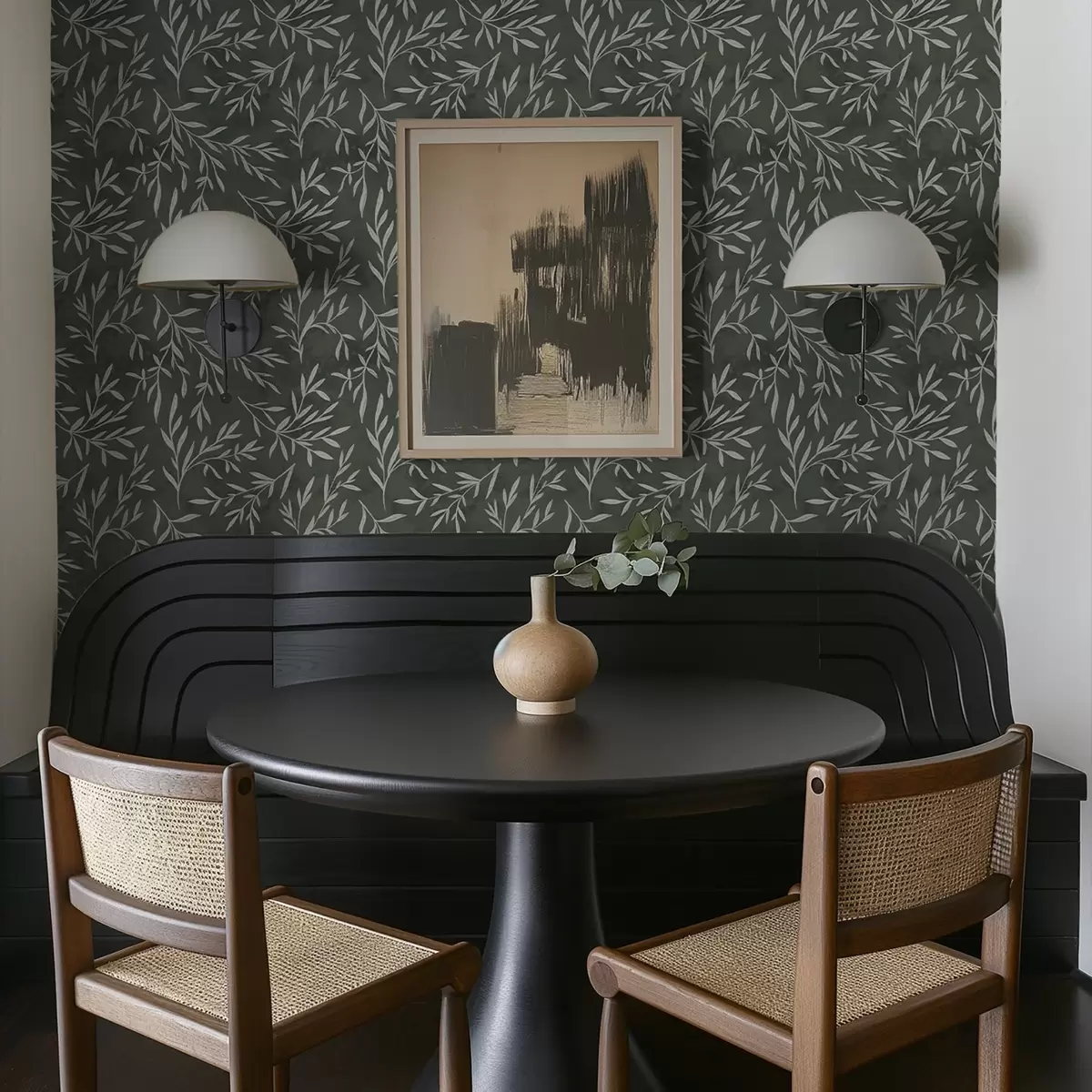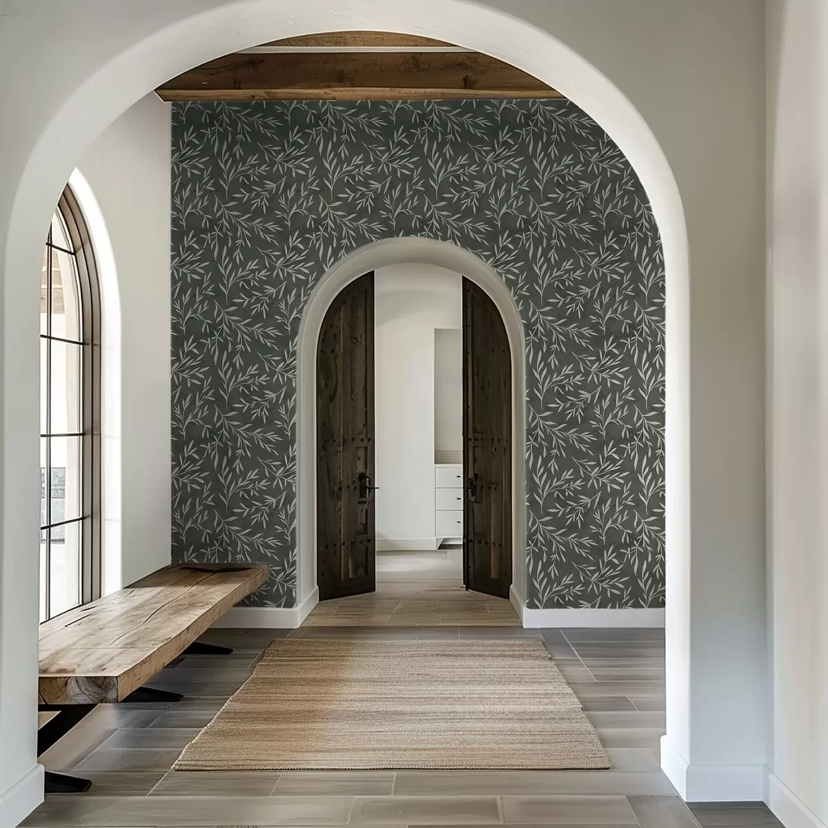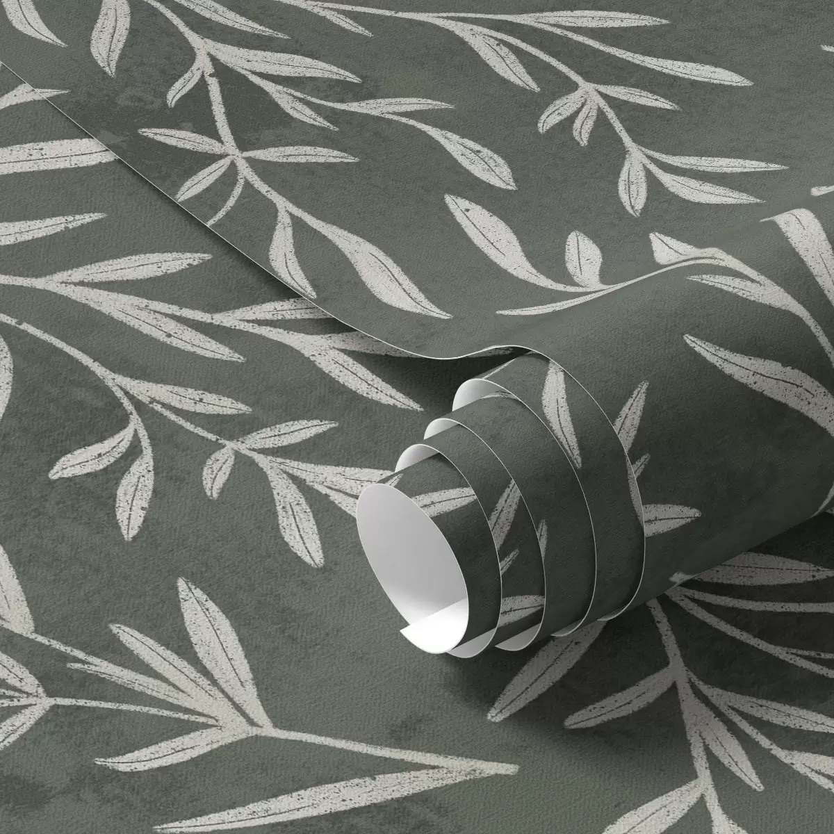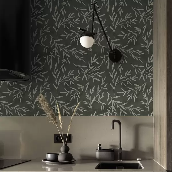 Papel pintado Ramas blancas esbozadas sobre un fondo verde salvia intenso. Nr. a00936v2