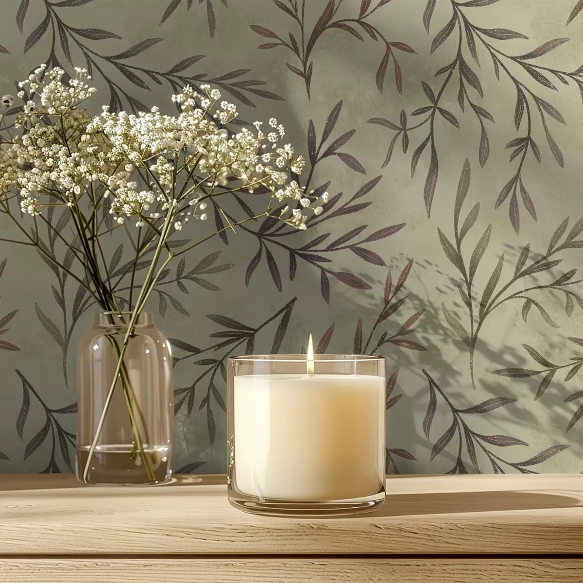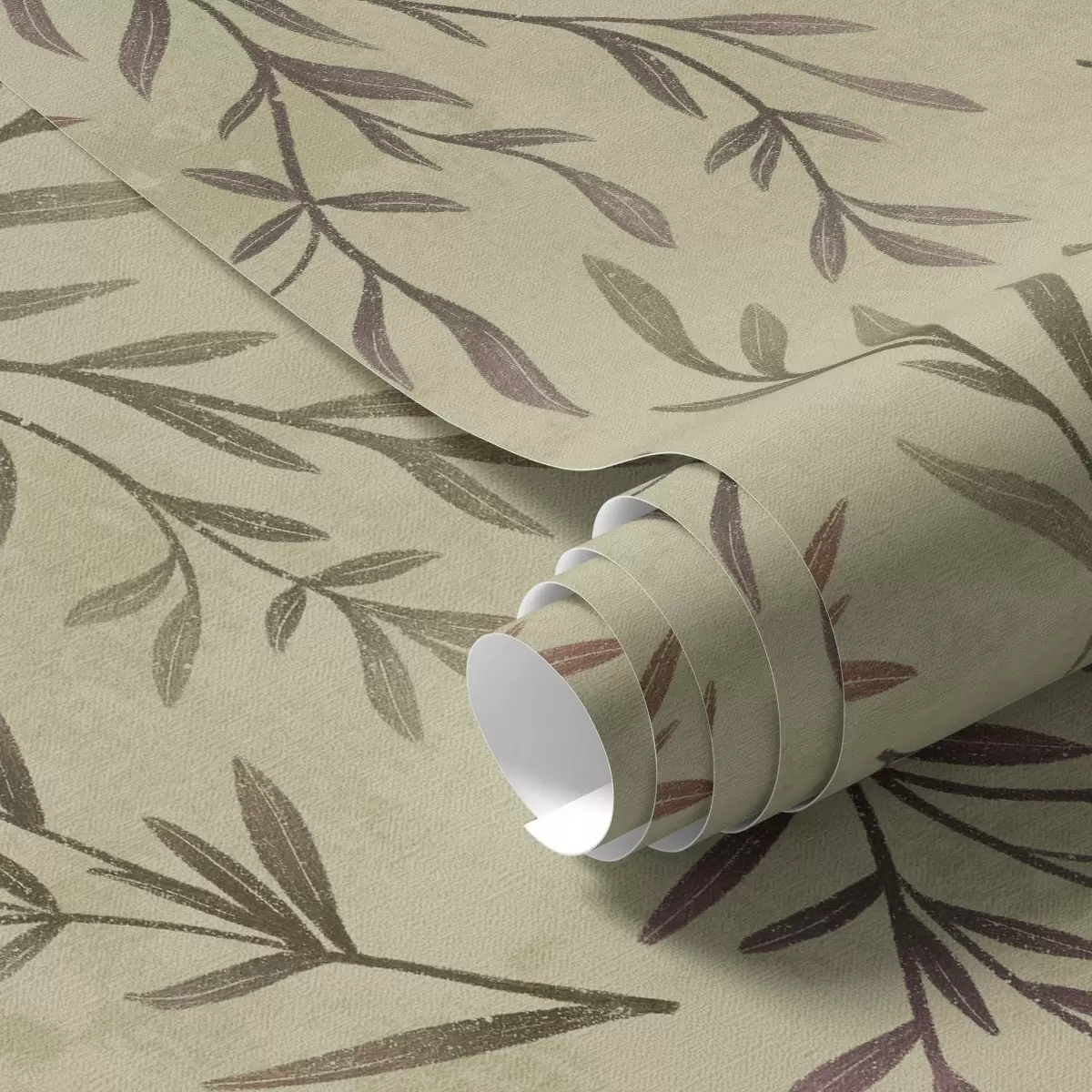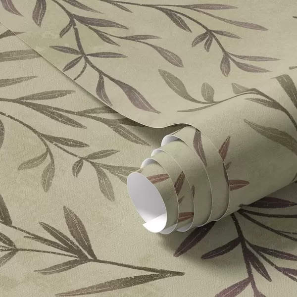 Papel pintado Ramas de lila y verde con hojas sobre un fondo cálido Nr. a00936v4