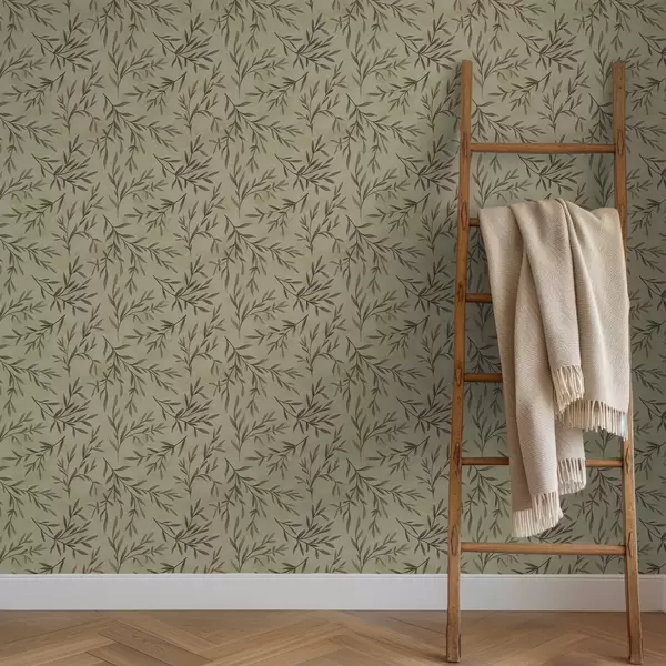 Papel pintado Ramas de lila y verde con hojas sobre un fondo cálido Nr. a00936v4