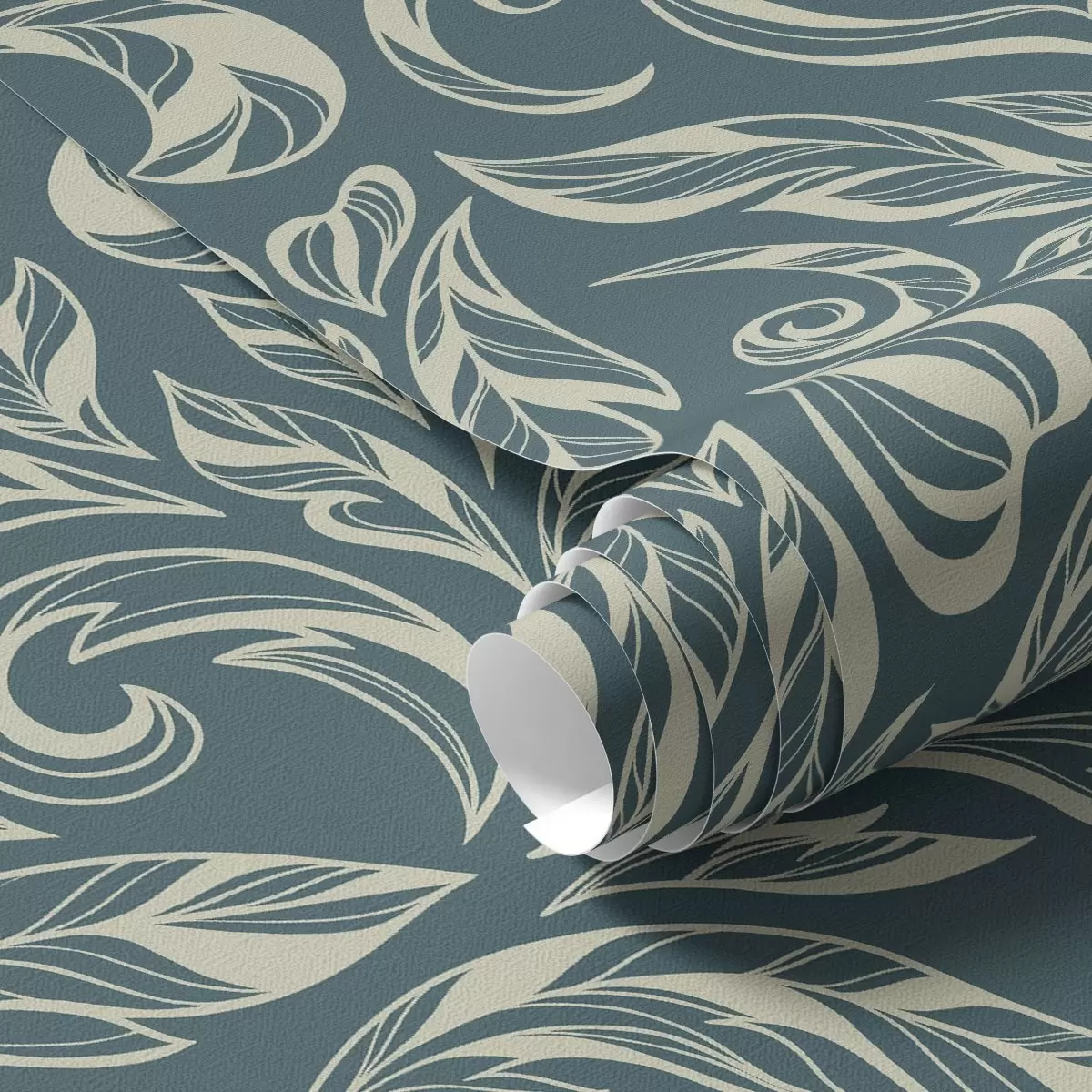 Papel pintado Patrón de hojas con líneas claras sobre fondo azul grisáceo. Nr. a00940