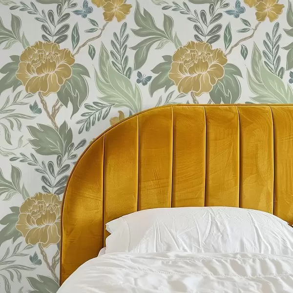 Papel pintado Grandes peonías amarillas y vegetación sobre un fondo claro Nr. a00941