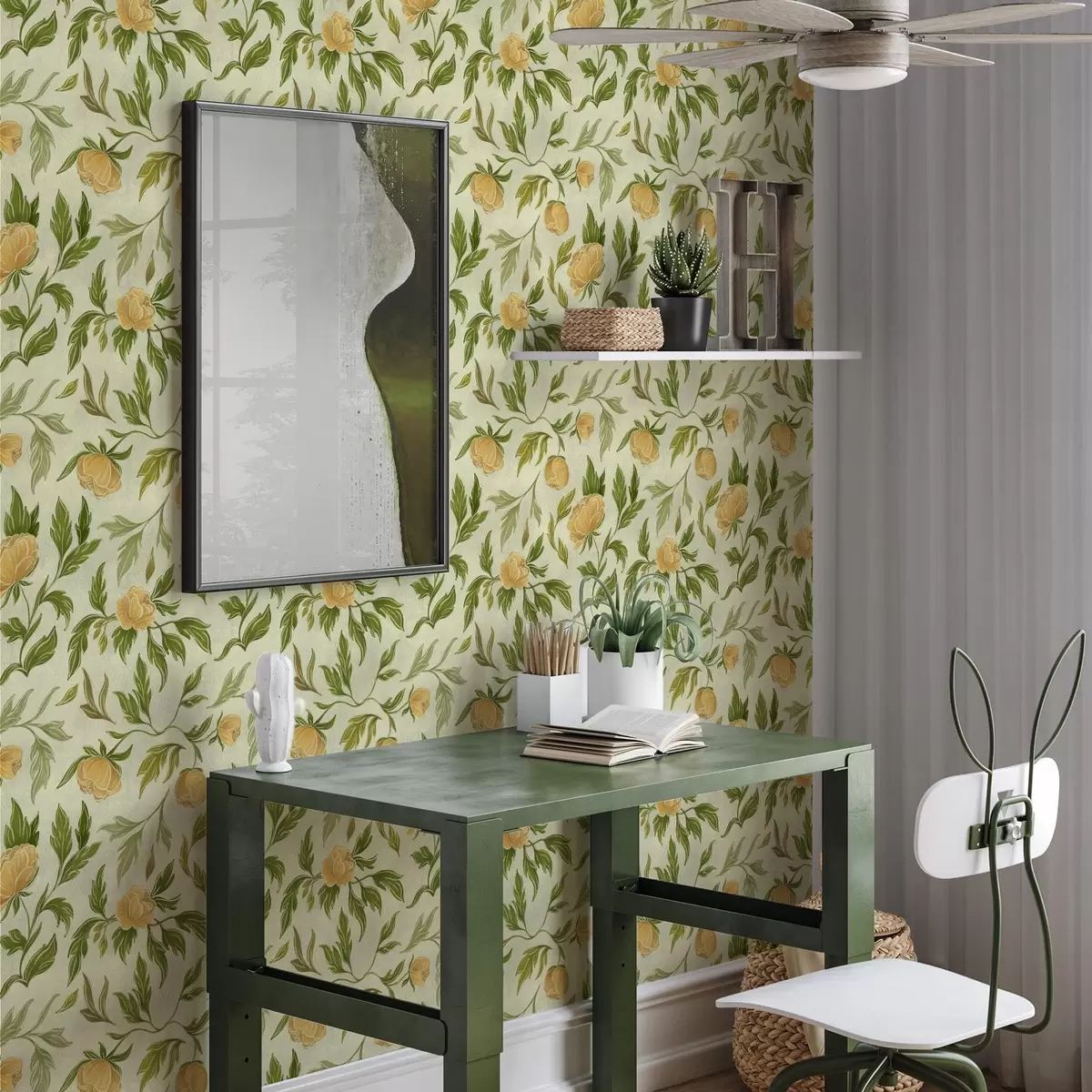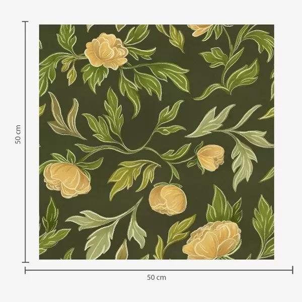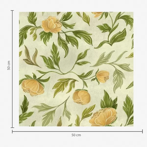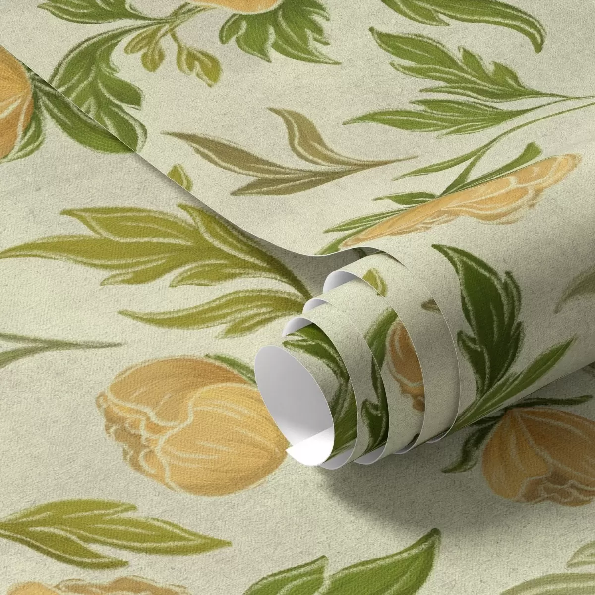 Papel pintado Peonías amarillas y follaje sobre un fondo verde claro suave. Nr. a00942