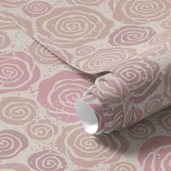 Papel pintado Rosas rosadas en espiral y salpicaduras sobre un fondo claro. Nr. a00955
