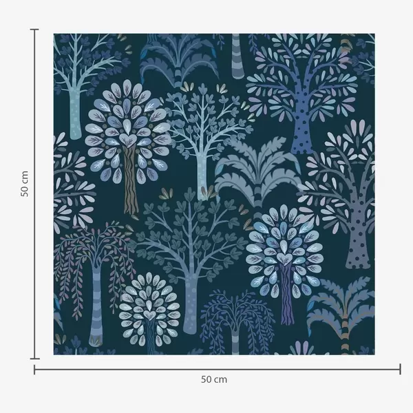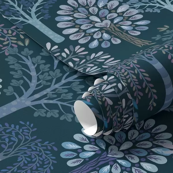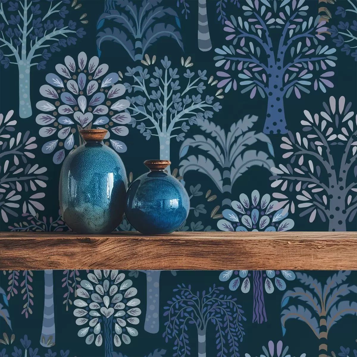 Papel pintado Bosque nocturno con árboles decorativos en tonos azules Nr. a00960v2