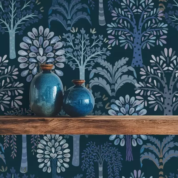 Papel pintado Bosque nocturno con árboles decorativos en tonos azules Nr. a00960v2