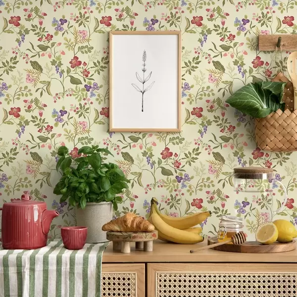 Papel pintado Jardín floreciente con bayas, uvas y flores silvestres Nr. a00961