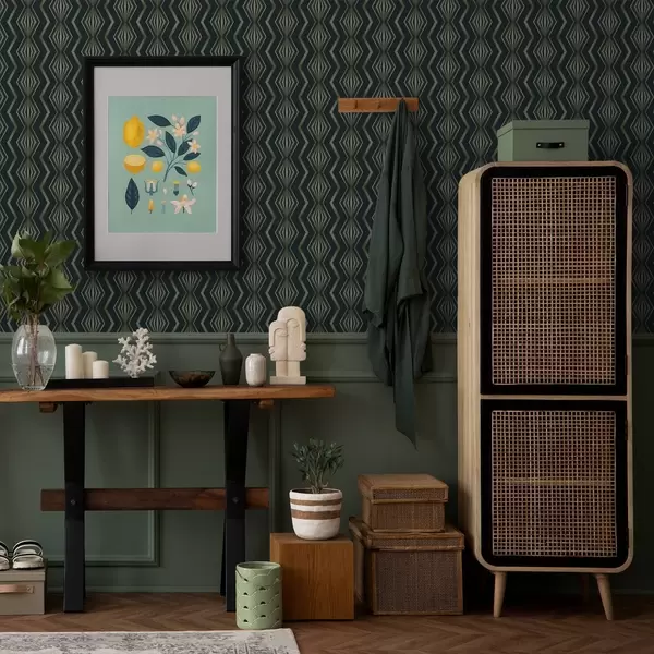 Papel pintado Patrón geométrico de rombos en color verde azulado oscuro Nr. a00973v1