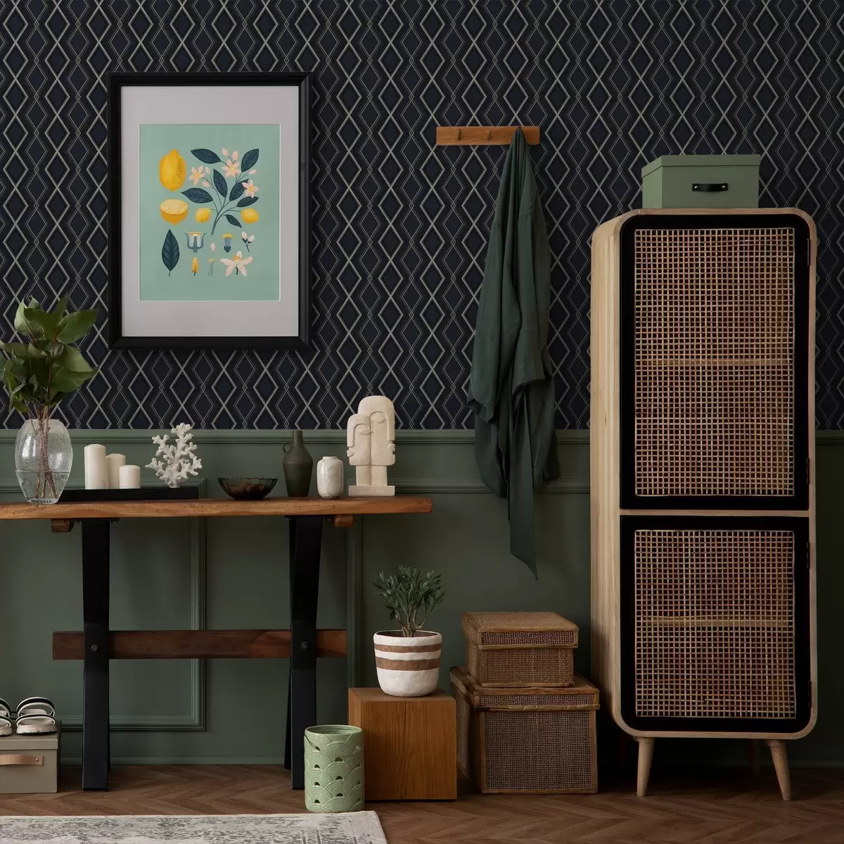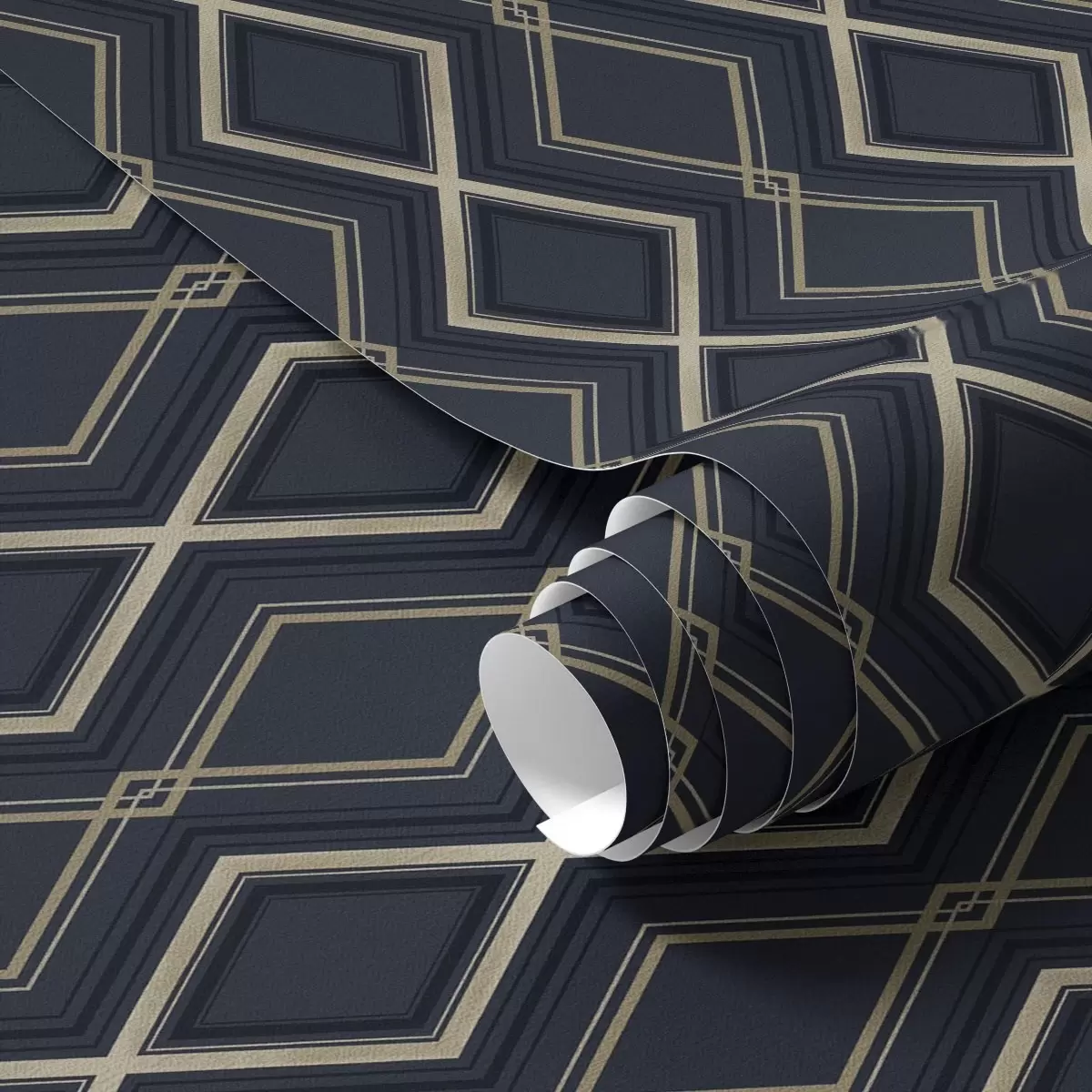 Papel pintado Cuadrícula de rombos azul oscuro con finas líneas claras Nr. a00975