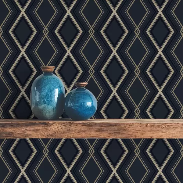 Papel pintado Cuadrícula de rombos azul oscuro con finas líneas claras Nr. a00975