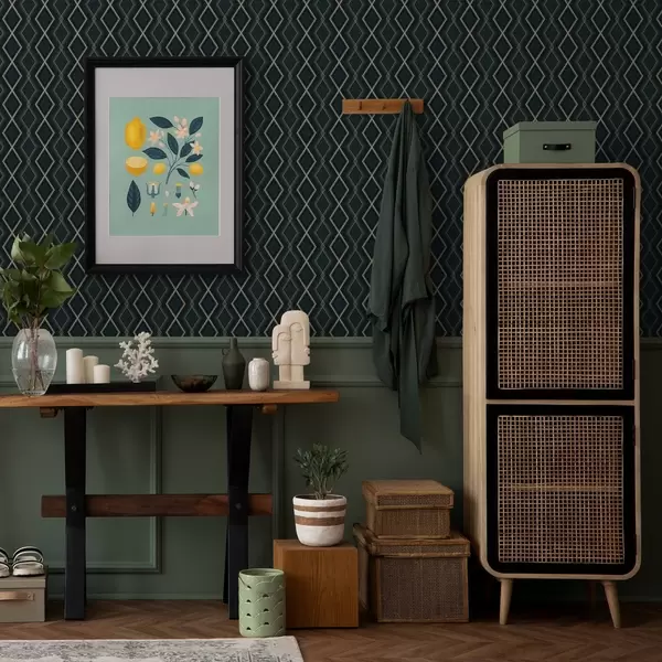 Papel pintado Fondo verde azulado oscuro con una rejilla de rombos repetitiva Nr. a00975v1