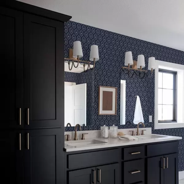 Papel pintado Motivos de gotas contrastantes con una flor sobre un fondo azul marino oscuro. Nr. a00977v1
