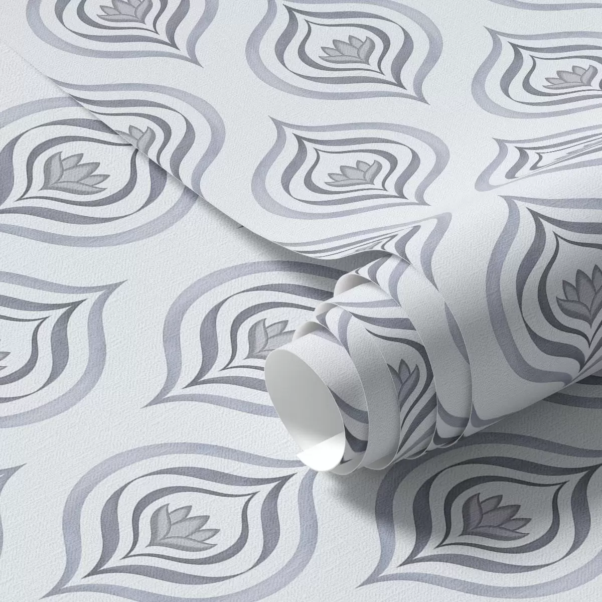 Papel pintado Motivo de gota con una flor en tonos gris azulados. Nr. a00977v3