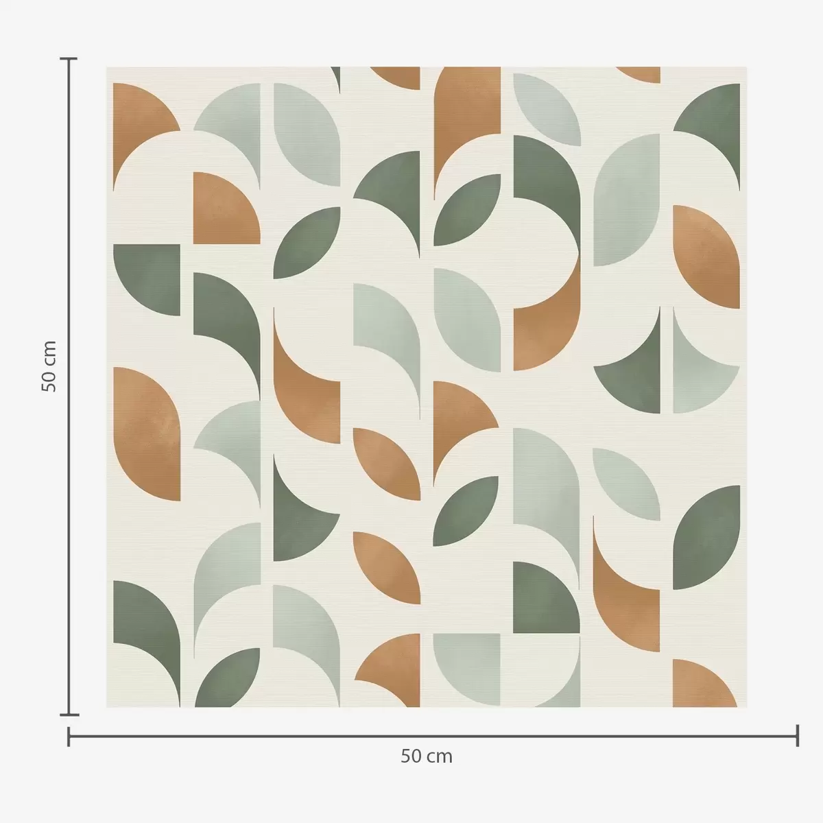 Papel pintado Columnas verticales de medias lunas y hojas, verde-terracota Nr. a00986