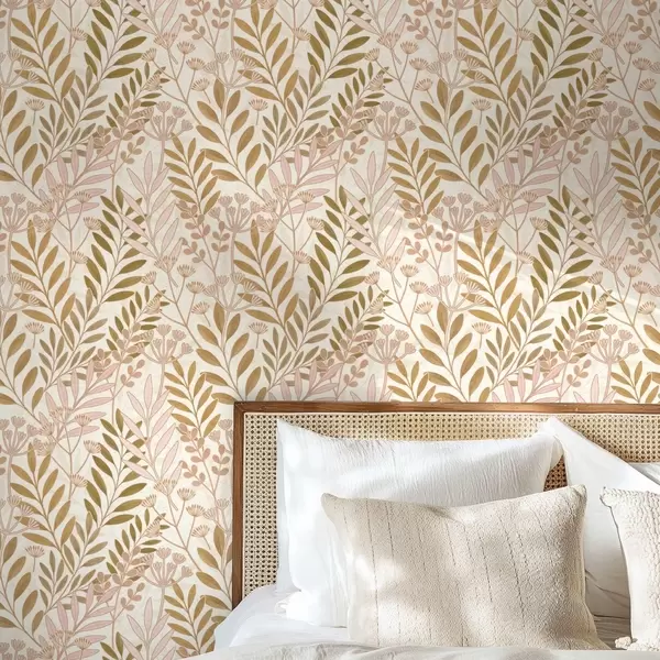 Papel pintado Diseño botánico ligero con delicadas hojas en tonos rosa y avena Nr. a01020v1