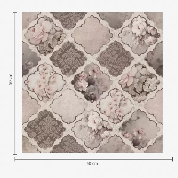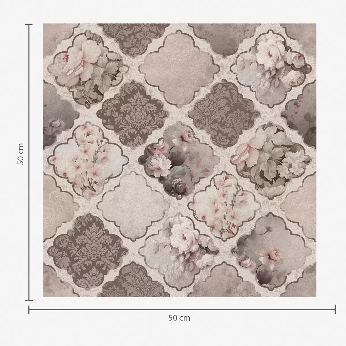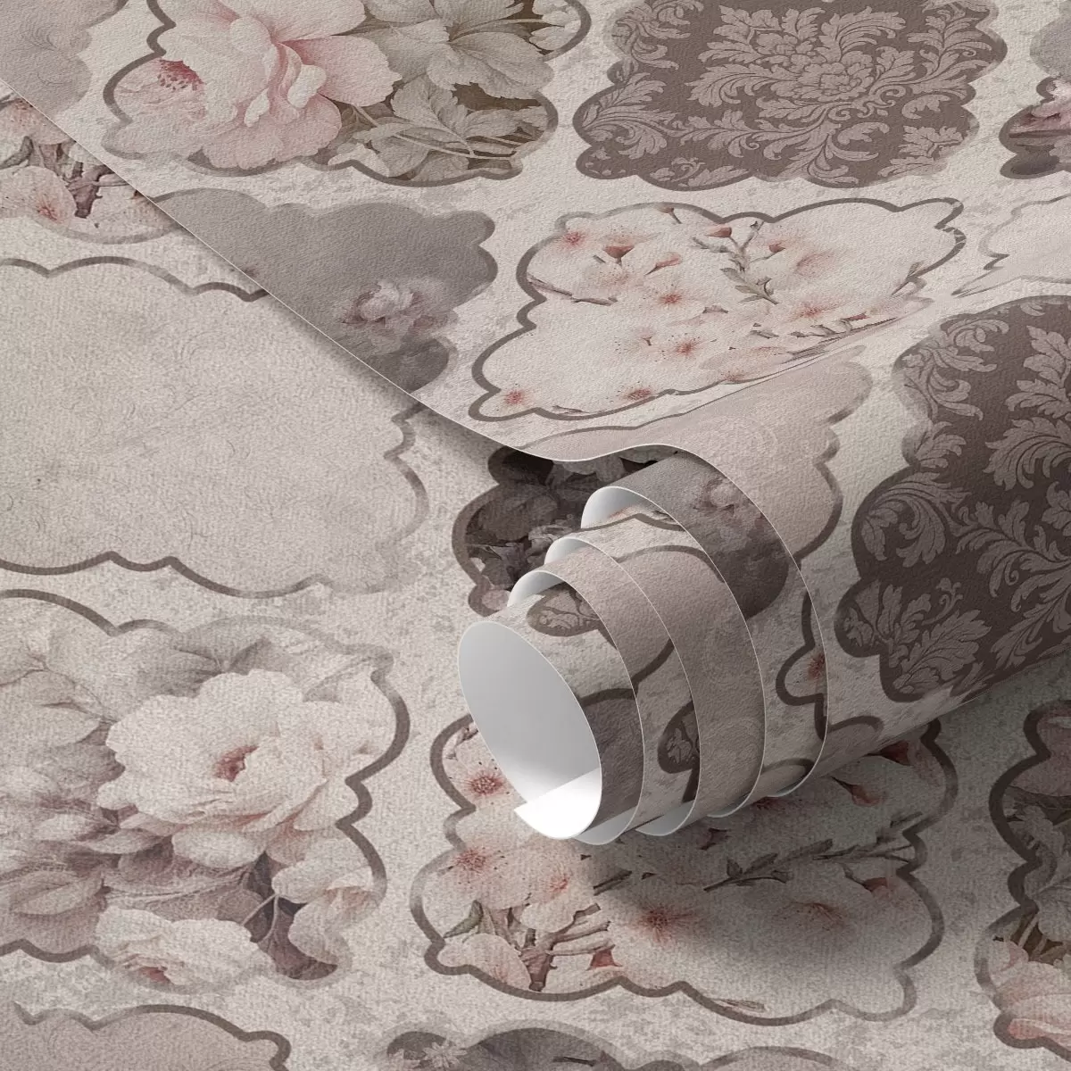 Papel pintado Romántico mosaico de medallones florales en tonos apagados. Nr. a01027