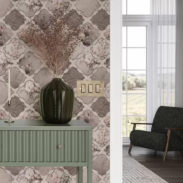 Papel pintado Romántico mosaico de medallones florales en tonos apagados Nr. a01027