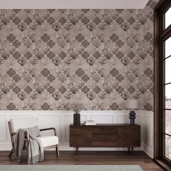 Papel pintado Romántico mosaico de medallones florales en tonos apagados Nr. a01027