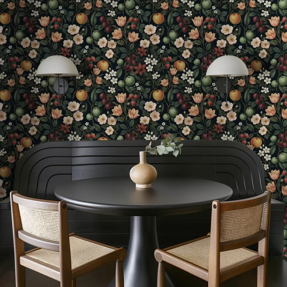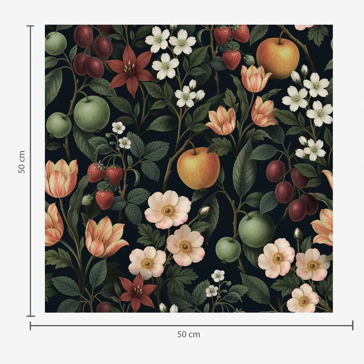 Papel pintado Jardín oscuro con flores, manzanas maduras y bayas. Nr. a01034