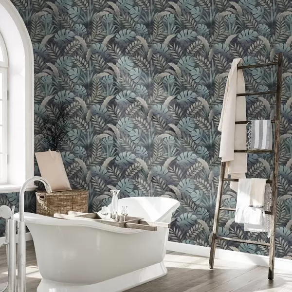 Papel pintado Follaje tropical en tonos azul verdosos fríos Nr. a01035