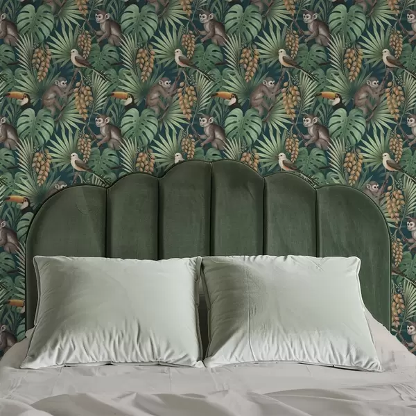 Papel pintado Monos y aves tropicales en la densa vegetación de la selva Nr. a01037
