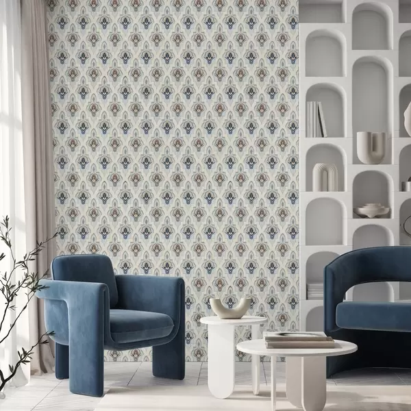 Papel pintado Patrón oriental de azulejos pequeños en una paleta de colores azul y arena Nr. a01044
