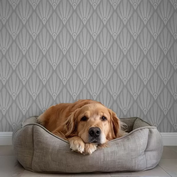 Papel pintado Art Déco gris con formas en forma de abanico Nr. a01064